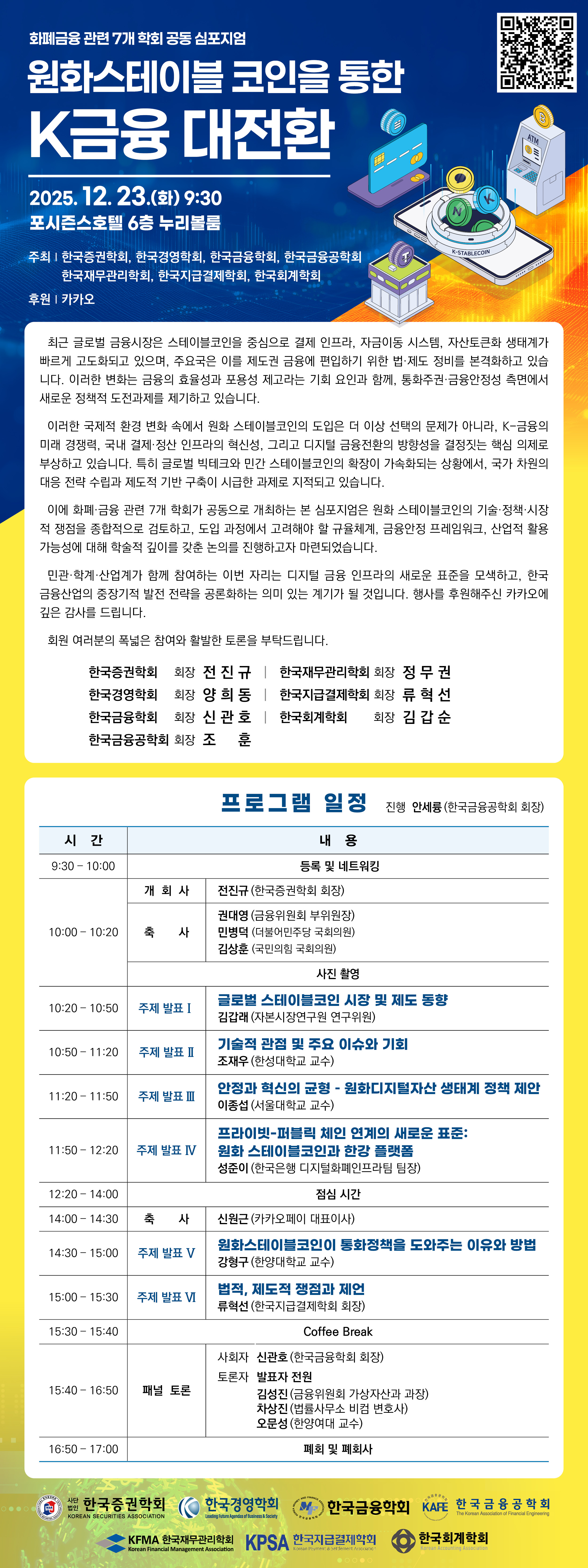 12월 23일 화폐금융 관련 7개 학회 공동 심포지엄 『원화스테이블 코인을 통한 K금융 대전환』개최 안내