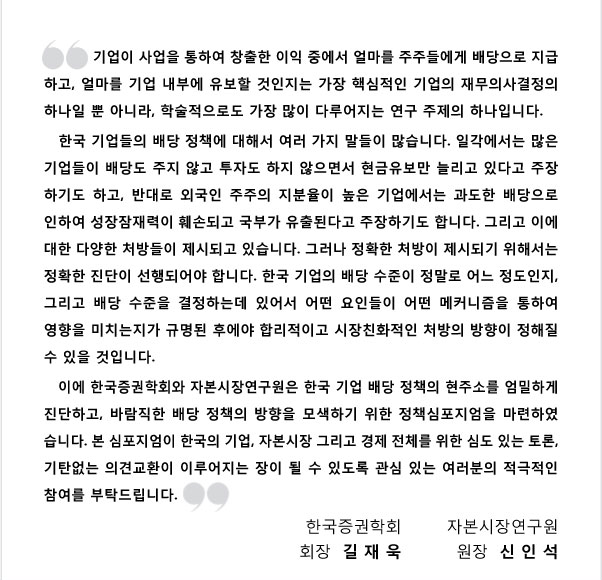 6/12(목) 정책심포지엄『한국 기업의 현금흐름과 배당 정책』