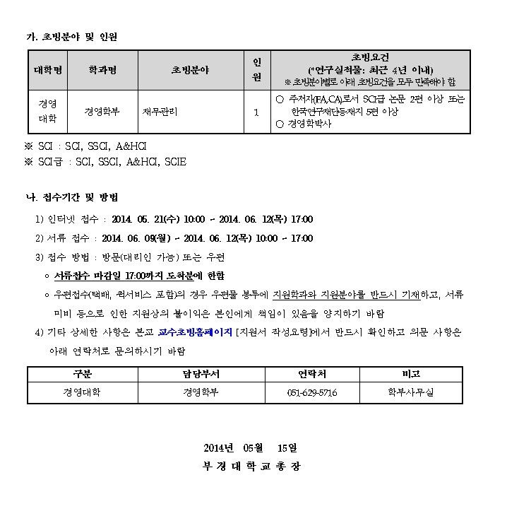 부경대학교 전임교원 초빙 공고