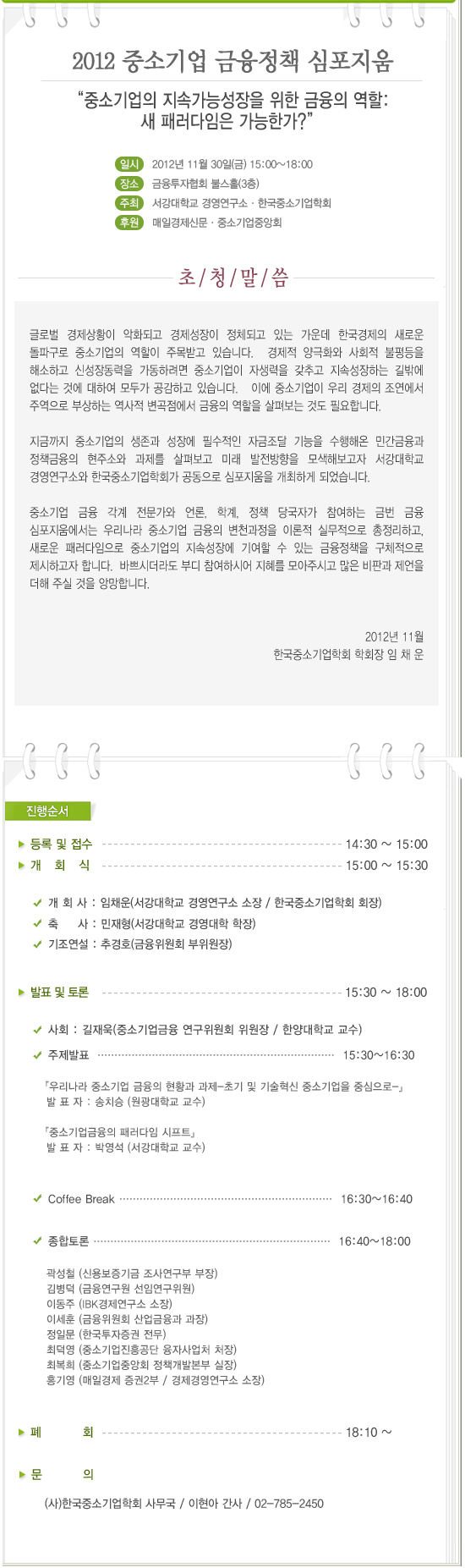 2012 중소기업 금융정책 심포지엄(11월30일)